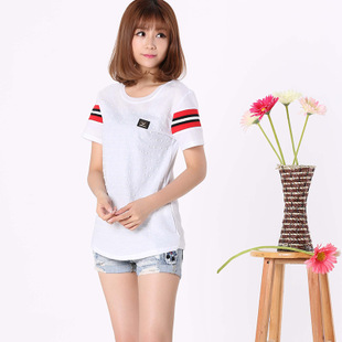 女裝夏季 韓版時尚清新圓領T恤 白色珍珠短袖T恤寬松T恤T6052 /