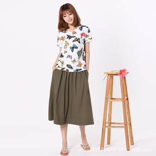2015女裝T恤 蝴蝶印花寬松型翻折短袖T恤 休閑圓領T恤2052 /