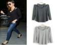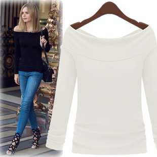 909歐美新款女式T恤性感一字領露肩長袖打底衫前后兩穿 量大從優 /