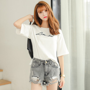 2015夏裝女式新款韓版寬松百搭基本款字母圓領短袖T恤半袖 /