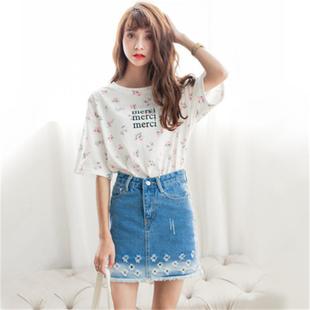 2015夏裝女式新款日系少女小碎花圓領短袖T恤半袖 /