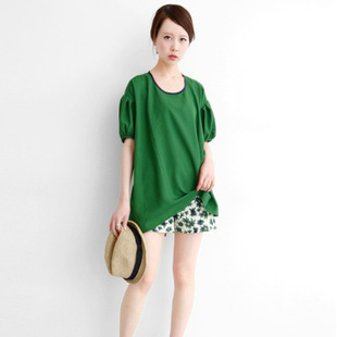 2015春夏季新款女裝 韓國女士泡泡短袖雪紡衫 品牌圓領(lǐng)短袖雪紡衫 /