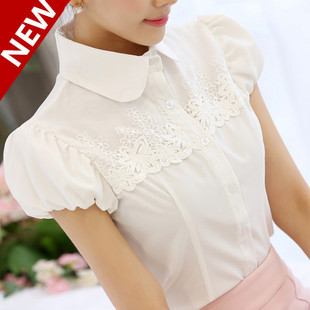 簡介: 產品類別 雪紡衫 貨源類別 現貨 風格 韓版 圖案 純色 主圖來源 實拍有模特 款式 開衫 工藝 刺繡/繡花 面料名稱 雪紡 面料主材質分類 合成纖維 面料主材質 聚酯纖維(滌綸) 面料主材質含量 81%-90% 面料次要材質分類 合成纖維 面料次要材質 氨綸 面料次要材質含量 10%-20% 貨號 169 產地 上海 版型 修身型 衣長 普通款(50cm<衣長≤65cm) 領型 娃娃領 袖型 泡泡袖 袖長 短袖 流行元素 拼接,刺繡,立體裝飾,紗網 上市年份/季節 2015夏季 面料 雪紡 顏色 乳白色 尺碼 S,M,L,XL,XXL