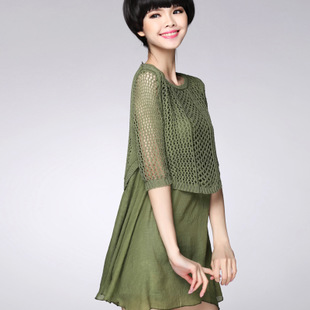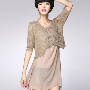 2015夏新款針織衫兩件套 鏤空設計 五分袖圓領 大碼女裝 上衣 /