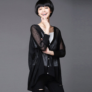 2015夏新款上衣女v領蝙蝠袖空調衫純色亞麻針織防曬開衫大碼女裝 /