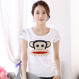 2015夏款女款韓版修身顯示百搭印花純棉短袖新款T恤 /