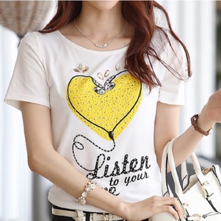 2015新款夏裝純棉女t恤短袖韓版全棉印花鑲鉆心愛型鏤空創意款 /