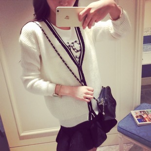 • 2015春季新款韓版撞色兔毛開衫V領(lǐng)兔毛針織衫學(xué)院百搭顯瘦外套 /