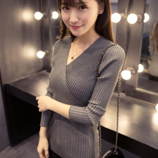 沁潮2015春季新款 韓版V領純色打底針織衫 修身毛衣地攤女裝Q795T /