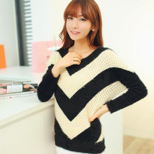 沁潮2014秋冬新款針織衫鏤空馬海毛女裝毛衣套頭外套打底衫Q262 /