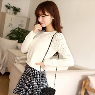 沁潮2014秋冬新款韓版針織衫鏤空長袖打底衫百搭女裝毛衣外套Q104 /