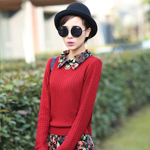 沁潮2015新款韓版針織衫女式蓬蓬碎花裙套頭毛衣外套Q014 /