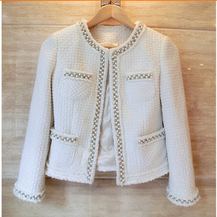2015春秋女裝釘珠外套名媛小香風羊毛粗花呢短外套女上衣工廠批發 /