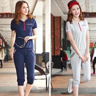 2015新款氣質短袖套裝女夏 時尚休閑T恤運動服長褲子 一件代發 /