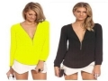 Ebay歐美外貿速賣通專供女裝 歐美 拉鏈雪紡衫 V領長袖襯衫 /