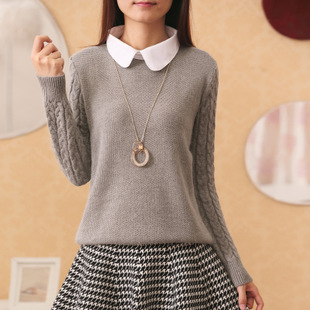 2014冬季新款韓版襯衫領麻花打底針織衫 加厚毛衣女外套多色混批 /