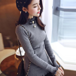 2014冬季新款韓版修身荷葉邊純色打底針織衫半高領女裝毛衣外套 /