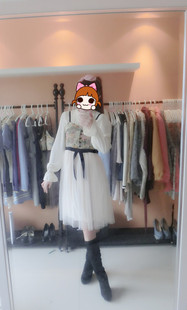 fint amavel復古提花紗紗裙JSK接拼白搭吊帶連衣裙現貨一件代發 /