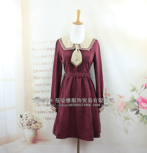 外貿軟妹fint學院風刺繡海軍領連衣裙mina12月雜志款 /