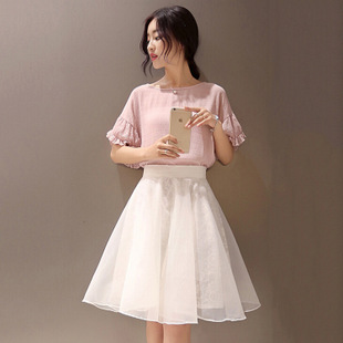 ANLANNA2015夏新款女蕾絲歐根紗半身裙韓官網雪紡衫上衣兩件套裝 /