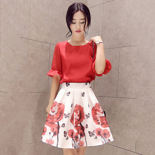 簡介: 貨號 2950# 產地 廣州 主圖來源 官方圖片 貨源類別 現貨 是否庫存 是 庫存類型 整單 風格 甜美 圖案 印花 面料 滌綸 款式 裙套裝 上衣款式 雪紡衫 上衣袖長 短袖 裙長 短裙 流行元素 印花 工藝 高溫定型 上市年份/季節 2015夏季 顏色 天藍色,粉紅色 尺碼 S,M,L,XL