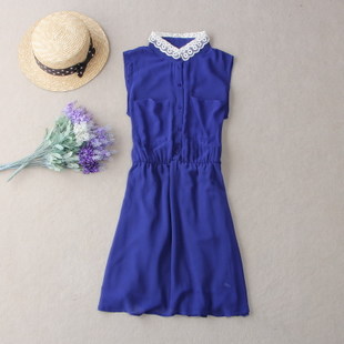 2015夏季精品女裝外貿原單蕾絲領雪紡連衣裙 廠家直銷批發 CN42 /