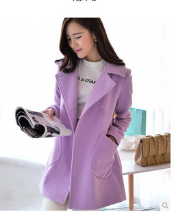 韓版中長款A字雙排扣翻領毛呢外套女 毛呢大衣 風衣女裝廠家直銷 /