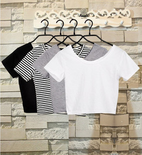 2015春夏季新款aa款露臍短款短袖T恤修身高腰純棉打底衫女上衣 /