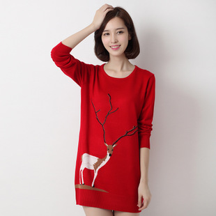 2015春精品時尚女裝 氣質女士韓版圓領針織長袖中長款 精仿羊絨衫 /
