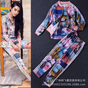 柯飛曼 2015春夏新款女裝 明星范冰冰同款印花三件套褲套裝長褲 /