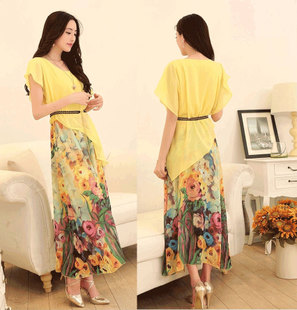 簡介: 建議零售價 ¥120.00 貨源類別 現貨 主圖來源 實拍有模特 風格 波西米亞 圖案 印花 工藝 印花/印染 面料名稱 雪紡 面料主材質分類 合成纖維 面料主材質 聚酯纖維(滌綸) 面料主材質含量 100% 面料次要材質分類 無 面料次要材質含量 無 是否庫存 是 貨號 G707-8014 產地 廣州 庫存類型 整單 款式 基本款 組合形式 單件 裙長 長裙 裙型 大擺型 領型 圓領 袖型 蝙蝠袖 袖長 短袖 腰型 中腰 流行元素 印花 上市年份/季節 2015夏季 面料 雪紡 顏色 白色,淺黃色 尺碼 S,M,L,XL