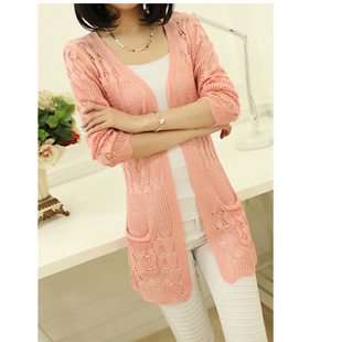 2015新款熱銷爆款女裝鏤空針織衫開衫外套透氣韓版薄款空調衫淘寶 /