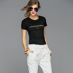 歐洲站t恤女短袖夏2015夏裝新款修身簡約金屬燙片字母印花衫T302 /