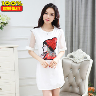 胖MM大碼2015夏季新款女裝 韓版中長款連衣裙短袖網紗顯瘦連衣裙 /