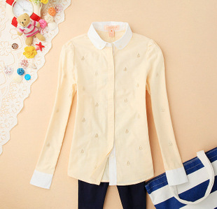 2014新款春款淑女屋少女學生裝英倫風學院風刺繡全棉襯衣長袖襯衫 /