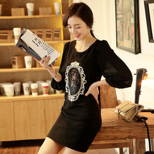 681#春季新款女裝韓版潮中長款修身歐洲站印花裙 /
