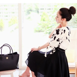 608#韓版春裝新款刺繡雪紡上衣配連衣裙兩件套 /