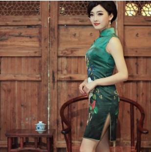 雀之戀 拾夏 2015夏裝 高檔真絲旗袍定位花無袖短款復(fù)古旗袍裙 /