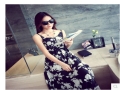 #2015春裝新款韓國百搭修身黑底白色大花吊帶連衣裙實(shí)價 /