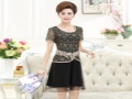中年媽媽裝蕾絲連衣裙修身大碼中老年女裝夏裝短袖裙子中長款批發 /
