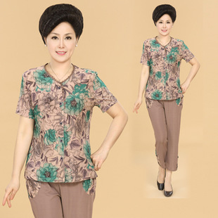 中老年女裝夏大碼女裝優雅媽媽裝短袖中老年女裝夏裝短袖印花 /