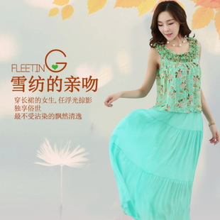 2013新款夏裝 歐美超大擺拖地長裙 顯瘦雪紡連衣裙批發 帶腰帶 /