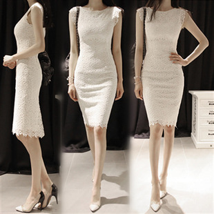 2015夏裝新款韓版修身蕾絲包臀無袖中長款連衣裙 /