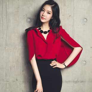 韓版 2015夏季新款女裝V領披肩襯衫上衣+短裙套裝 熱銷 一件代發 /