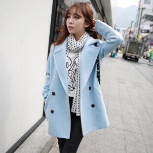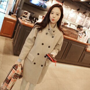 2014秋冬新款女裝韓版雙排扣加厚羊毛呢中長款外套大衣 廠家直銷 /