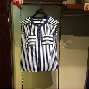 現貨批發 15夏經典百搭條紋無袖襯衫襯衣SFBA52403S /