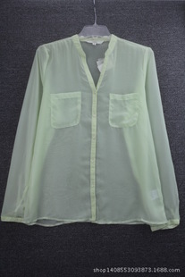 2015春夏女裝新款V領純色薄款長袖襯衫女士精品上衣X /