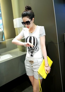 2015女裝新款韓國時尚休閑運動拼色鑲鉆套裝女夏裝短褲短袖t恤 /