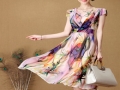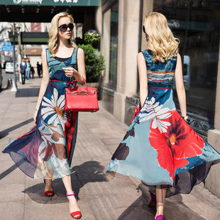 夏新款大碼女裝雪紡波西米亞連衣裙女印花大擺長裙 歐美風連衣裙 /