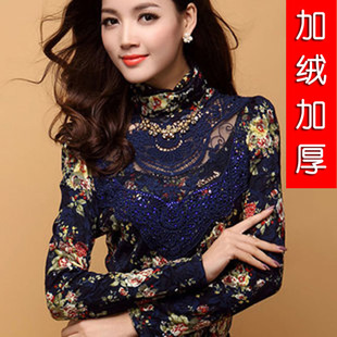 廠家直銷2014秋冬新裝韓版蕾絲高領修身長袖女打底衫加絨加厚 /